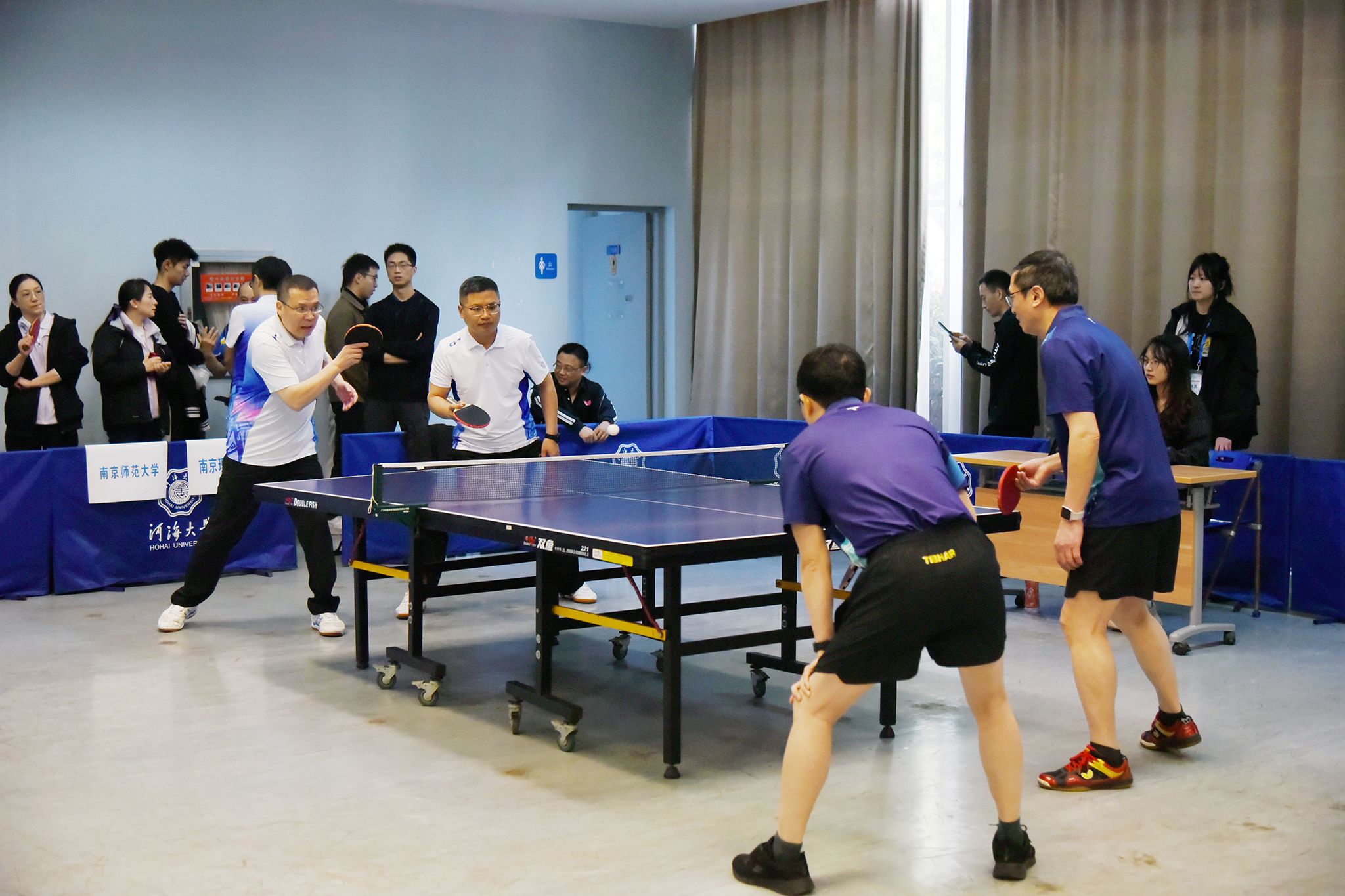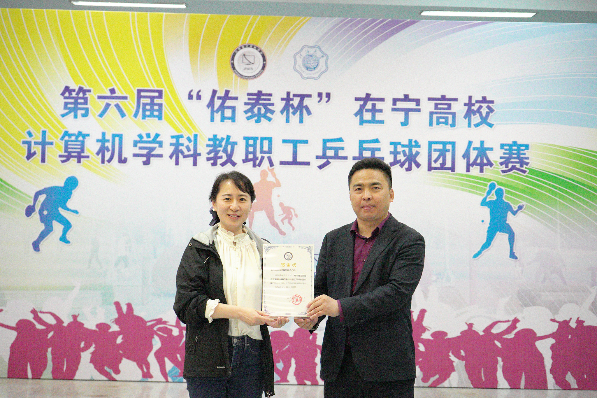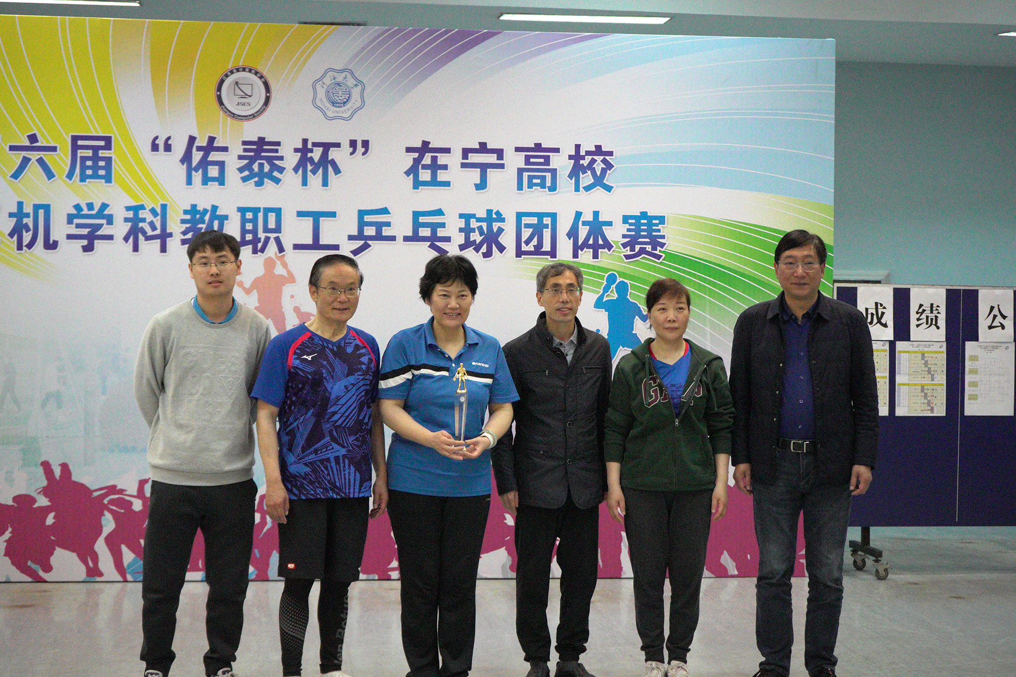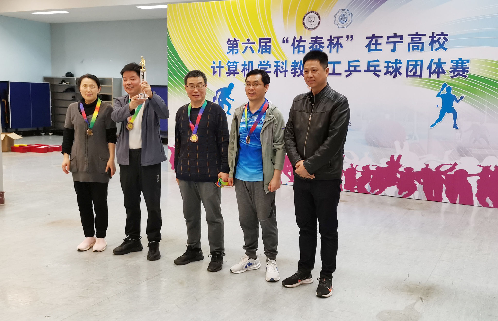 2023年4月1日第六届“佑泰杯”在宁高校计算机学科教职工乒乓球团体赛在河海大学江宁校区开赛,本届赛事由江苏省计算机学会主办,河海大学信息学部承办,佑泰信息技术集团股份公司协办。经过一天紧张激烈而和谐有序的比赛,来自南京市高校的计算机学科院系代表队及外省联合代表队共15支参赛队伍认真参赛,顽强拼搏,赛出了较高水平和良好风尚。