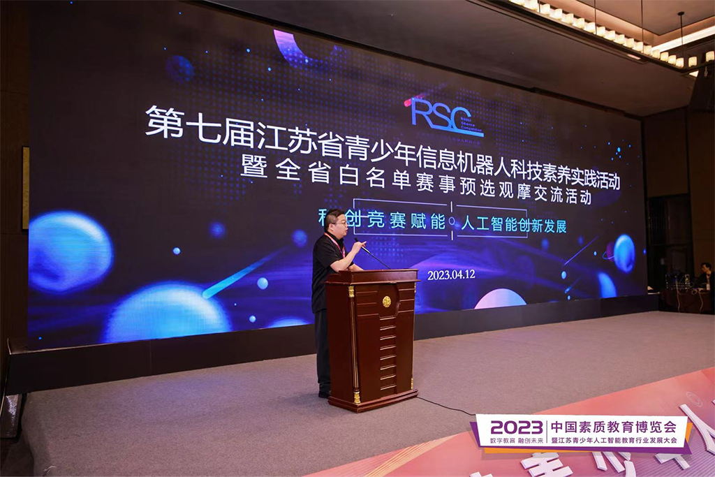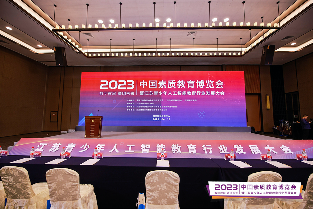 为贯彻落实党的二十大精神,统筹推进科技、教育、人才战略支撑工作,鼓励更多青少年在电子、信息和人工智能等高新领域进行学习、探索、研究和实践,加强省市间交流。2023 中国素质教育博览会暨江苏省青少年人工智能教育行业发展大会于 2023 年 4 月12日在南京国际博览中心举行,本次大会由江苏省计算机学会联合全国工商联民办教育出资者商会共同主办,江苏省计算机学会青少年信息与智能教育专委会承办,江苏融创未来赛事运营管理有限公司协办。来自全省人工智能教育行业专家、学校老师约600人相聚南京。