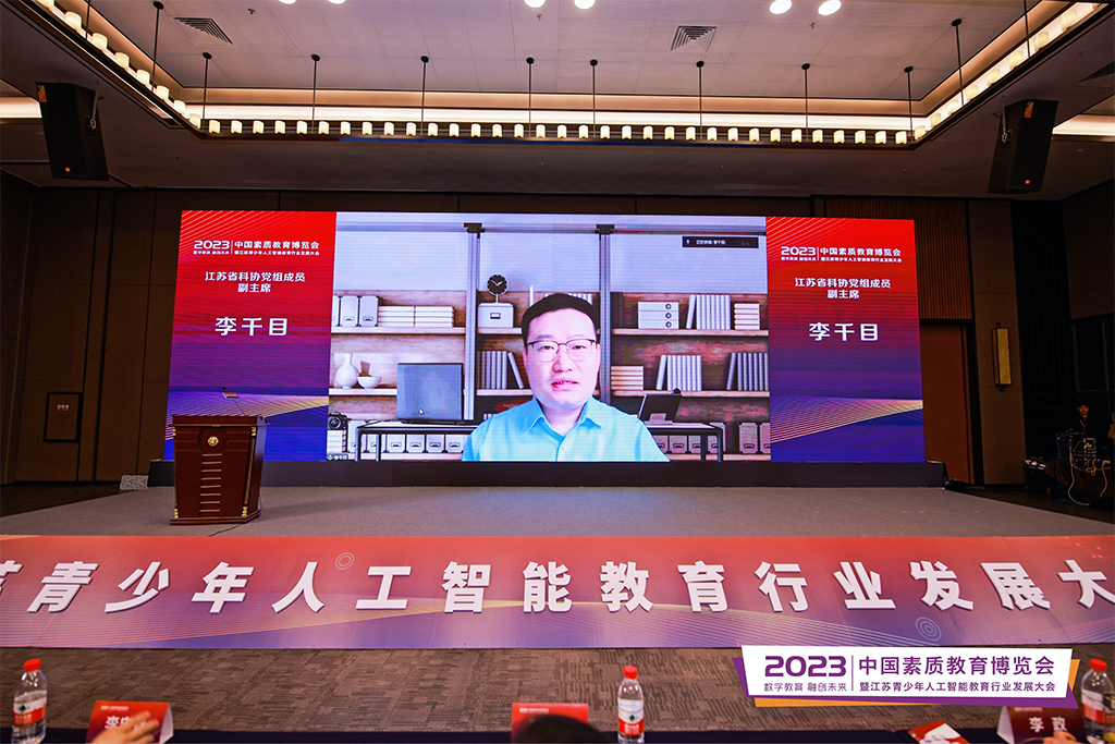 江苏省科协党组成员、副主席李千目在远程致辞中指出,近几年,省科协持续推动社会层面对人工智能教育发展的认识与行动,谈了自己关于智能技术与教育融合的一些看法,从四个纬度展望了我省科技教育的发展方向:教育改革创新将注入人机协同、共创分享的新动力;教育科学研究将进入交叉融合、集智创新的新阶段;教育发展目标将聚焦更加公平、更有质量的新标准;教育治理体系将面临社会伦理、数据安全的新挑战。李主席还强调,人工智能时代下的教育,更加注重培养学生的创新能力和合作精神,实现更加多元、更加精准的智能导学与评价,促进人的个性化和可持续发展。