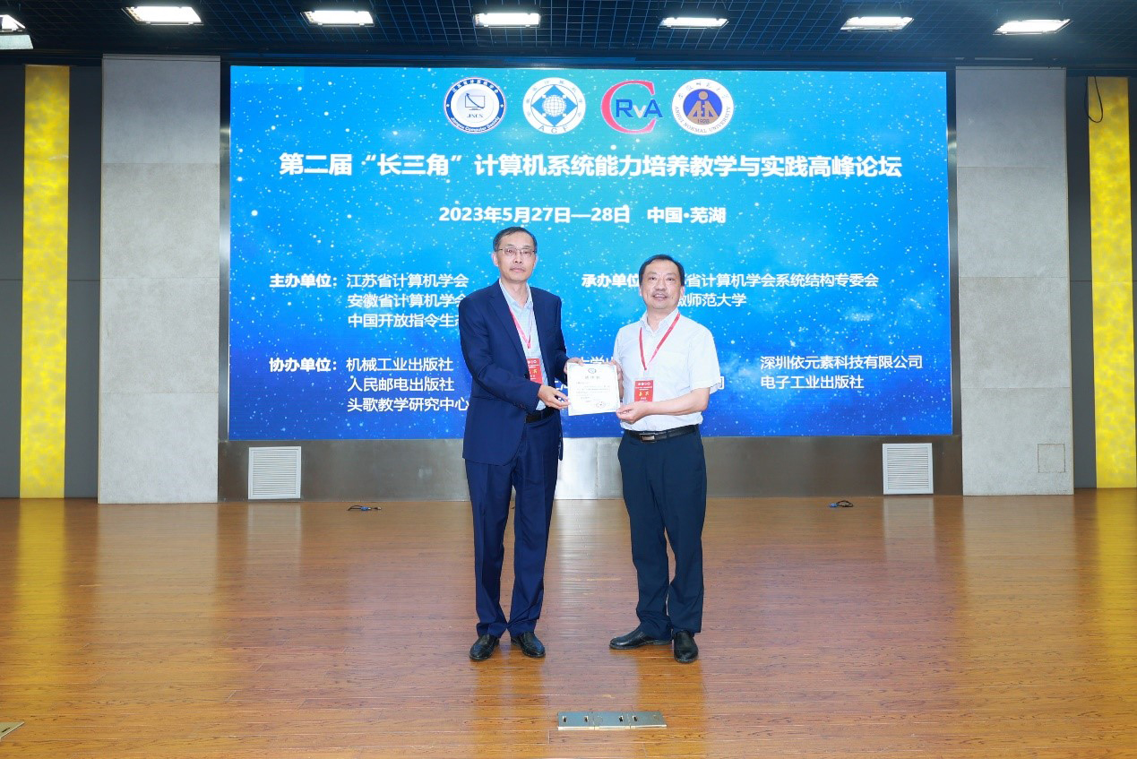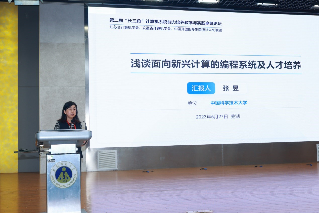 2023年5月27日至28日,第二届“长三角”计算机系统能力培养教学与实践高峰论坛在安徽师范大学花津校区实习实训中心报告厅顺利召开。论坛由江苏省计算机学会、安徽省计算机学会、中国开放指令生态(RISC-V)联盟主办,江苏省计算机学会系统结构专委会、安徽师范大学共同承办,机械工业出版社、清华大学出版社、深圳依元素科技有限公司、人民邮电出版社、上海梭鱼智能科技有限公司、电子工业出版社、头歌教学研究中心、芜湖市计算机学会协办。论坛邀请中国科学院计算技术研究所、中国科学院软件研究所、中国科学技术大学、南京大学、浙江大学、东南大学、西北工业大学、南京理工大学、南京航空航天大学、中国矿业大学、合肥工业大学、安徽大学、苏州大学等国内著名高校、科研院所的专家、学者参加,“长三角”30多所高校140余位相关老师和我校近200位师生参加论坛。