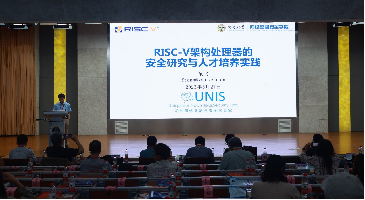 东南大学网络空间安全学院童飞副教授以《RISC-V架构处理器的安全研究与人才培养实践》为题,介绍了基于RISC-V指令集架构在学术研究与人才培养中的实践,特别是在处理器微架构安全性研究方面的探索,总结了RISC-V安全研究的未来发展方向。报告介绍了基于研究课题和成果设置SRTP项目,探索组织学生参加国家级竞赛、派遣学生到校外参加项目培训和相关实习、与企业进行产学研合作等多维度的人才培养模式。
