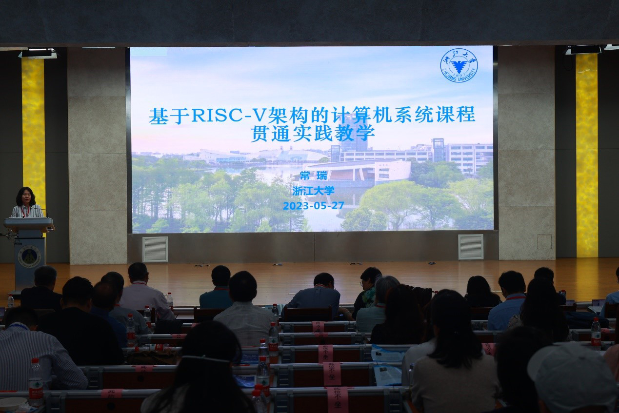 5月27日,论坛安排了两个阶段的主题报告和一个Panel。第一阶段由江苏省计算机学会系统结构专委会副主任、南京航空航天大学赵蕴龙教授主持了《基于开源模式的大规模芯片设计人才培养实践:“一生一芯”计划》《浅谈面向新兴计算的编程系统及人才培养》《“一生一芯”计划中的计算机系统能力培养经验分享》三场报告,第二阶段由安徽师范大学计算机与信息学院副院长接标教授主持了《RISC-V架构处理器的安全研究与人才培养实践》《基于RISC-V架构的计算机系统课程贯通实践教学》两场报告。