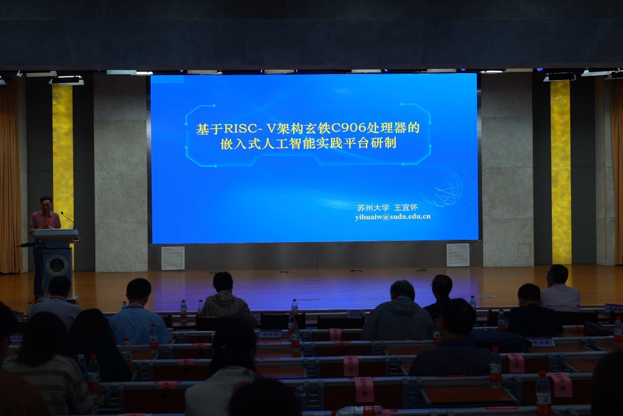 苏州大学计算机科学与技术学院王宜怀教授以《基于RISC- V架构玄铁C906处理器的嵌入式人工智能实践平台研制》为题,介绍了苏州大学嵌入式人工智能实验室SD-EAI基于D1-H微处理器构建的通用嵌入式计算机GEC实现的四大功能,并给出了研究的基本要点及开发平台的技术资源。