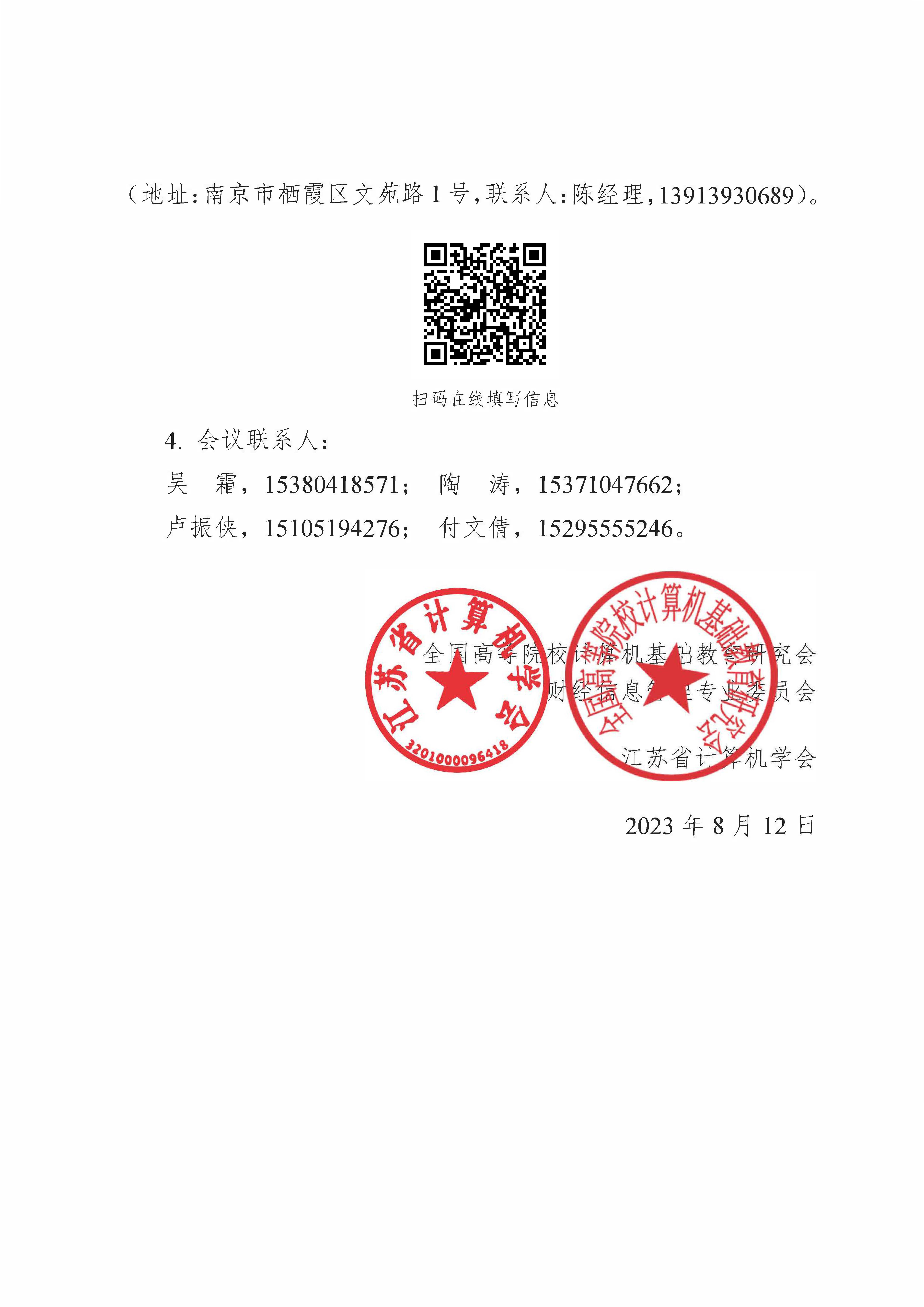 秘书处市内联络点 地址: 江苏省南京市汉口路22号 邮编:210093 电话/传真:025-86635622