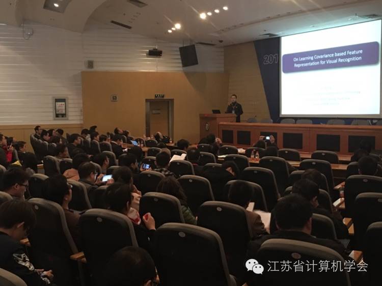 大会特邀报告的6位专家学者及其报告题目分别是:澳大利亚伍伦贡大学计算与信息技术学院副教授王雷的“On Learning Convariance based Feature Representations for VisualRecognition”,国家优青、南京理工大学计算机学院教授唐金辉的“社会媒体语义的挖掘、理解与检索”,国家优青、苏州大学计算机学院教授熊德意的“机器翻译的大数据智能”,中科院“百人计划”入选者、同济大学特聘教授黄德双的“卷积神经网络的回顾、展望与生物信息学应用探讨”,国家优青、东南大学计算机学院教授耿新的“标记分布学习范式”,中国计算机学会优秀博士学位论文奖获得者、南京大学计算机系副教授王魏的“Theoretical Analysis on the Utility of Unlabeled Data”。王雷教授在报告中介绍基于协方差矩阵的图像识别,分享了其基于协方差的视觉识别特征表示方法的研究成果,通过学习和设计协方差矩阵,能显著提高图像识别性能。唐金辉教授的报告从数据形态和数据源分别入手,通过异质媒体信息跨域传播与网络图像标签改善两种解决方案为各种学习任务提供丰富的带标签数据,为机器学习特别是深度学习提供基础。熊德意教授的报告探讨了大数据驱动的机器翻译及其面临的四个主要问题,并总结机器翻译需要“大数据”和“深层模型”齐头并进地发展。黄德双教授报告了所在研究团队将卷积神经网络技术应用于生物数据的相关分析,推动卷积模型在医学影像学中的应用与发展。耿新教授详细描述了标记分布学习范式,及其相较于传统学习范式的优势和广泛的应用前景。王魏教授报告了如何利用未标记数据进行机器学习,并通过三种范式的理论分析,解释其良好的学习性能。