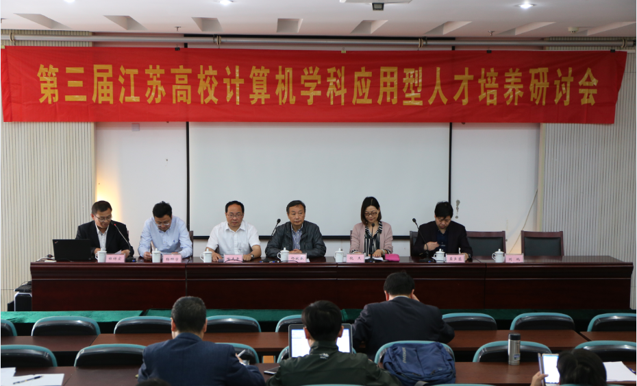 一、在主席台就座的有金陵科技学院副校长倪杰教授,南京大学计算机系副主任陶先平教授,江苏省计算机学会秘书长杨献春教授,联盟主席、常熟理工学院龚声蓉教授,联盟副主席、南京晓庄学院教务处处长杨种学教授,联盟秘书长、金陵科技学院计算机学院田祥宏书记。开幕式由田祥宏书记主持,金陵科技学院副校长倪杰教授、江苏省计算机学会秘书长杨献春教授、江苏省应用型高校计算机学科联盟主席龚声蓉教授先后致辞;倪杰副校长对会议代表的到来和会议的成功举办表示了欢迎和祝愿;杨献春秘书长对联盟成立不足一年,便举办了这么多活动表示了肯定和欣慰;龚声蓉主席对承办方表示了感谢,对下午的研讨活动做了明确的安排。