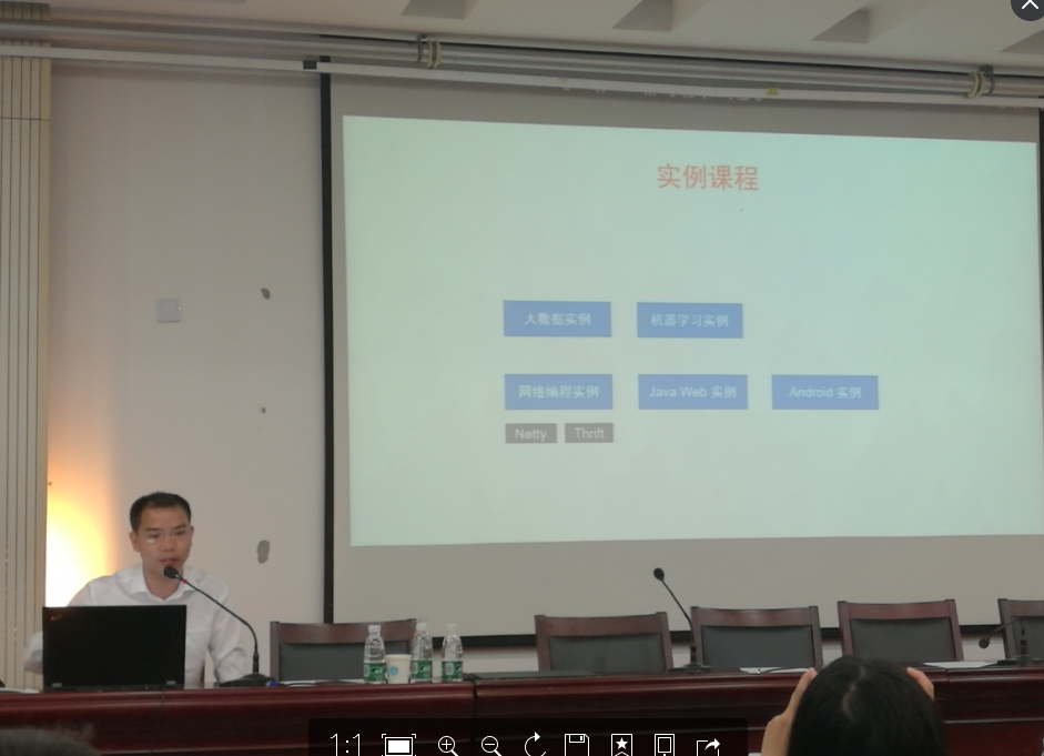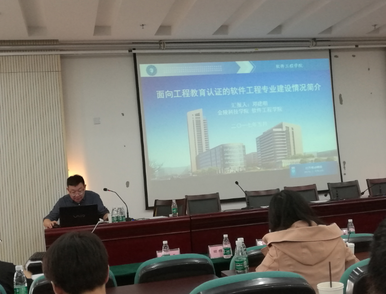 三、下午的专题报告也同样精彩纷呈。首先是金陵科技学院软件学院执行院长邓建明教授做了题为《针对工程教育认证的软件工程专业建设情况简介》的报告,邓教授长期专注注软件工程专业的人才培养,并直接参与了工信部行业标准的制定,报告对培养方案、“产学三级驱动”的实践与创新能力培养模式、课程群建设学生编程能力培养、学生创新创业能力培养、教学质量保障体系建设、以及未来工作计划等进行了阐述。紧接着淮阴工学院计算机学院刘金岭教授做了题为《项目驱动与创新创业相结合的数据库课程建设与教学模式实践》的报告,刘教授主持的数据库原理及应用课程建设,获省成教精品课程及校教学成果一等奖,主编的《数据库系统应用教程》教材获省重点教材,三年间销量近20000册。刘教授重点讲述了三位一体的教学模式,并展现了教学成果。接下来叶晓江工程师用精彩实用地案例讲解了《如何学习大数据》,他独特的视角得到了与会老师的好评;最后是赞助单位,也是本次会议的协办单位南京绿萝智能科技有限公司,其创始人杨毅,做的题为《VR/AR人才培养》的报告,用大量地实例展示了此领域人才培养的重要性和迫切性,也对公司的成果做了展示。