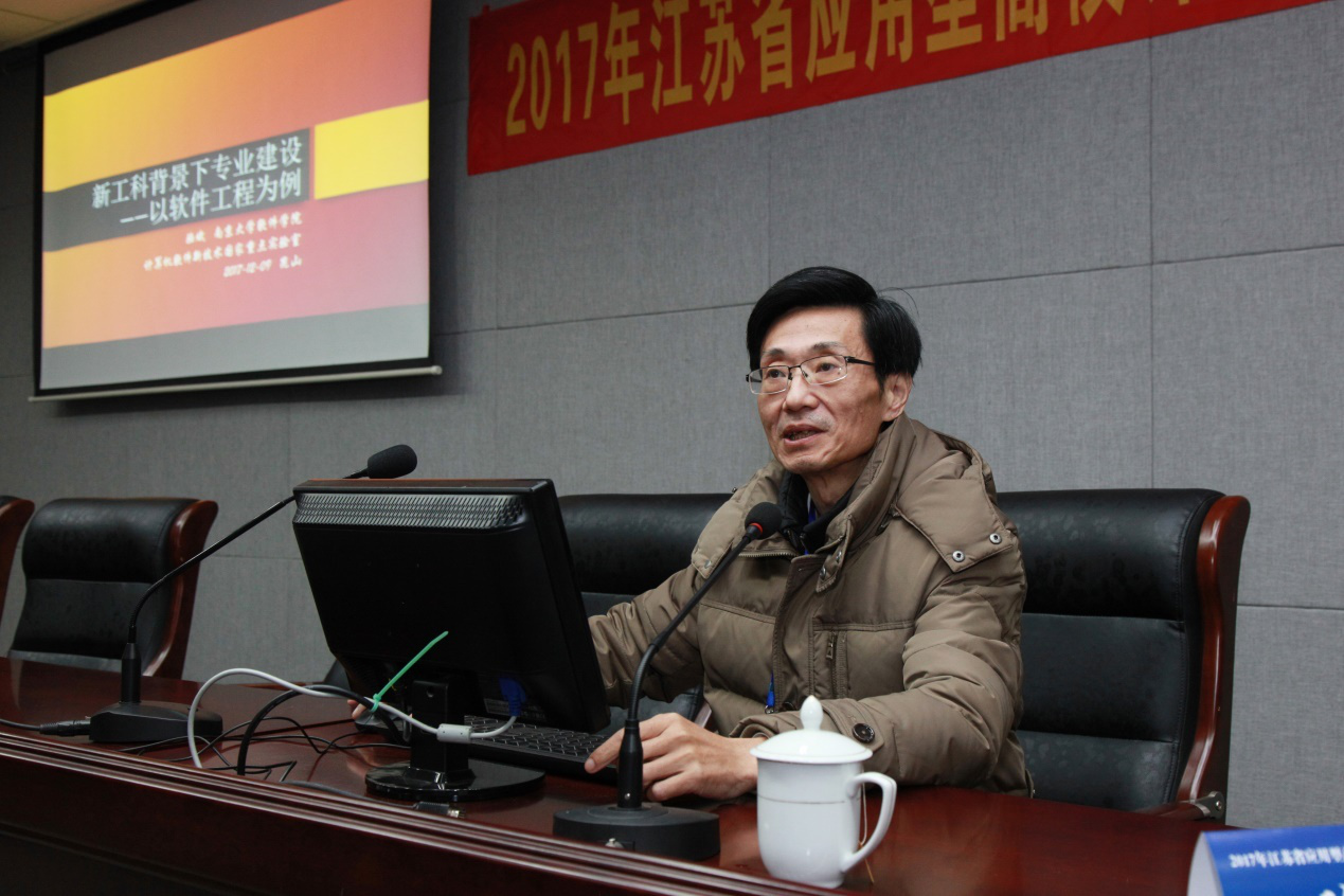 会议邀请南京大学软件学院骆斌教授报告《新工科背景下的专业建设--以软件工程为例》,北京航空航天大学计算机学院副院长高小鹏教授报告《信息技术新工科产学研联盟介绍》,北京邮电大学纪阳教授报告《新生工程认知及创新素质培养的探索与思考》。会议还安排两位企业专家做大会报告,分别是来自江苏省未来网络研究院魏亮总监报告《软件定义时代以开源软件引领实践教学》,和上海育创网络科技股份有限公司费晓峰报告《大数据时代下的新工科人才培养》。联盟新任主席、常熟理工学院计算机学院院长龚声蓉教授,副主席、江苏理工学院计算机学院院长叶飞跃教授,副主席、淮阴工学院计算机与软件工程学院院长赵建洋教授主持了大会报告。
