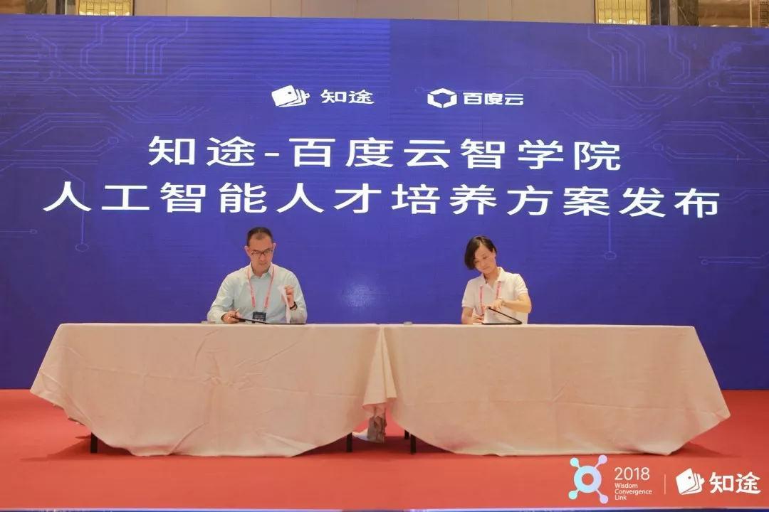 百度云智学院依托百度云ABC战略,借助百度在人工智能领域的巨大优势,帮助学员掌握云计算、虚拟化、大数据,人工智能等前沿技术的基础知识。知途教育与百度云战略签署仪式,并与百度云智学院发布人工智能人才培养方案。