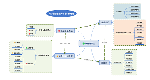 银商通是中国银行为商协会独立开发的商协会智慧服务系统,系统结构如下。