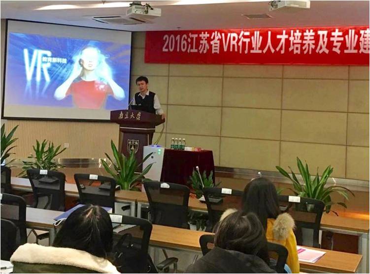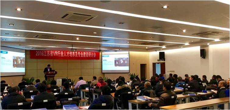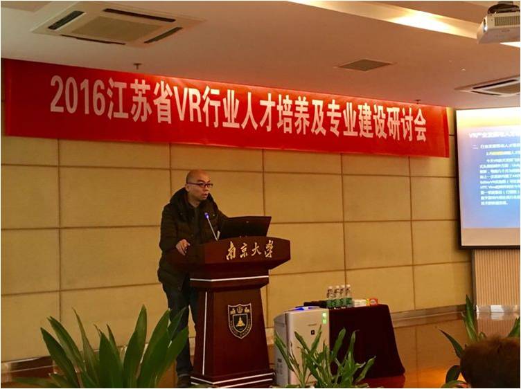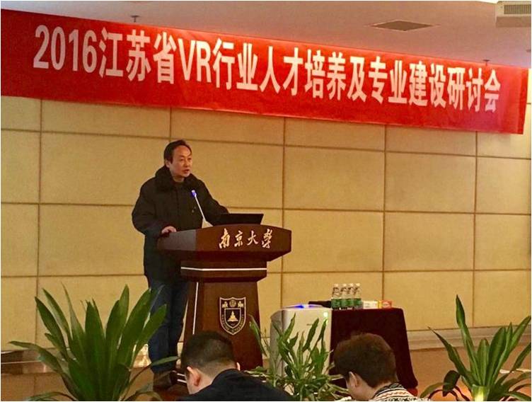 省计算机学会邀请高校的应用型技术专家尤海宁首先作《VR行业发展与人才培养》的主题报告,尤老师是南京师范大学虚拟仿真与互动游戏实验室负责人,他在报告中首先介绍了VR(虚拟现实)行业尤其是AR(增强现实)发展概况,然后通过描述和演示,分享了他带领和指导的学生团队利用三维虚拟仿真技术研发出的一些成果,让与会者看到了增强现实技术在现实生活及游戏、娱乐中的广泛应用。据他介绍,当下三维虚拟仿真游戏的发展方向是在增强现实技术手段上的创新,而增强现实是一种同时包括虚拟世界和真实世界要素的环境,与计算机图形图像处理技术、空间定位技术及人工智能技术密切相关,具有虚实结合、实时交互的特点。增强现实技术在国内尚处于起步阶段,是游戏及相关领域技术发展所形成的新的商业热点和卖点。也需要大量培养从事VR/AR技术研发尤其是应用资源开发的人才。