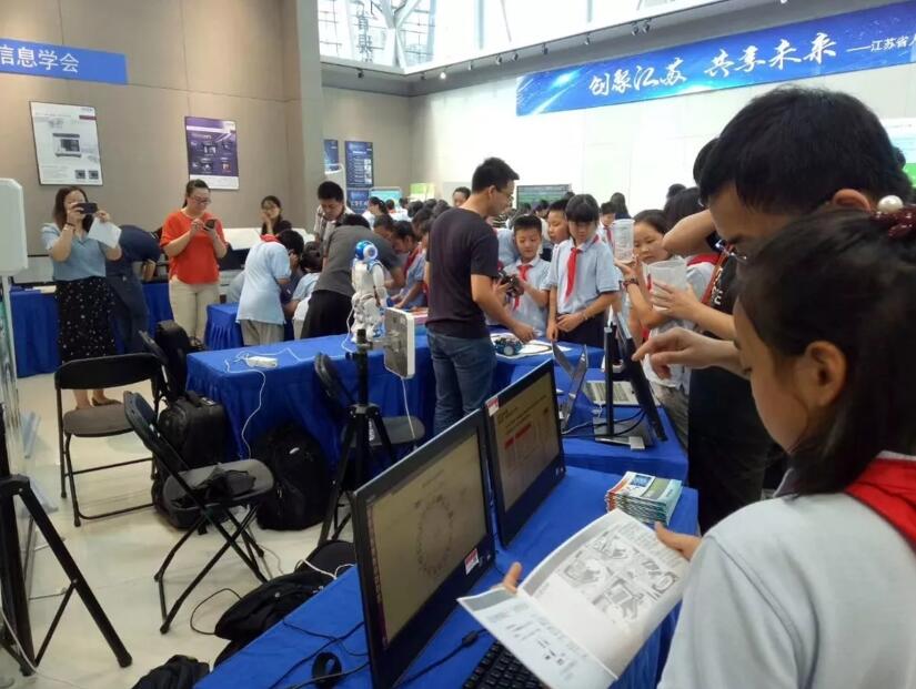 科普日一天有2000多人参观,江苏省计算机学会展位本着先进性、趣味性和实用性贴近学生的兴趣和吸引社会公众的眼球,吸引了众多参观者观看、了解和咨询,很多学生动手闯关赢得奖品,别开生面。