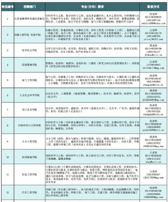 2.应聘者将个人简历等相关材料发送至人事处邮箱(rsc@ycit.cn),或与人事处工作人员联系。吴老师:0515-88298600,13770033235;李老师:0515-88298600,13912518111;董老师,0515-88168891,13770028729。