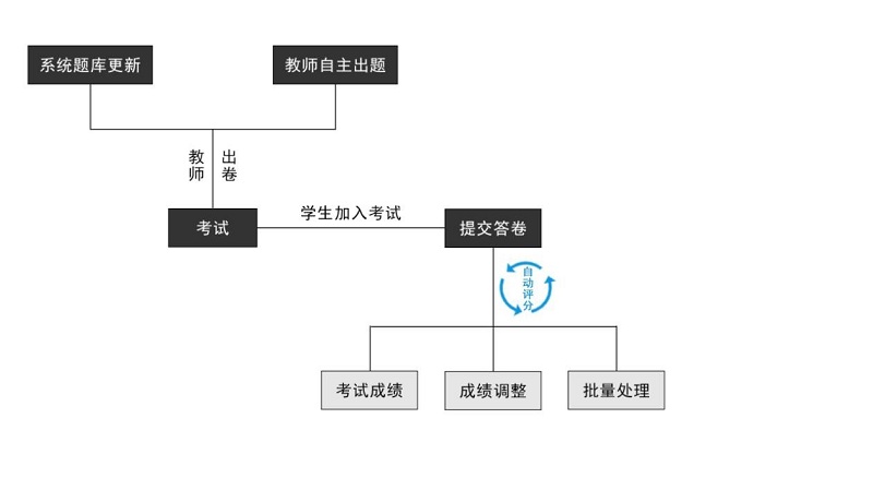 本系统主要面向教学实训,老师教师用户可以直接选用系统题库自带的题目;也可以在平台上提交需要学生完成的相关Junit测试自己出练习题。学生在平台上,可以通过平台提供的在线集成开发环境或在本地安装平台提供的插件在本地集成开发环境中完成教师所布置的练习题;同时平台会为学生和老师实时返回本次练习的完成情况评分。