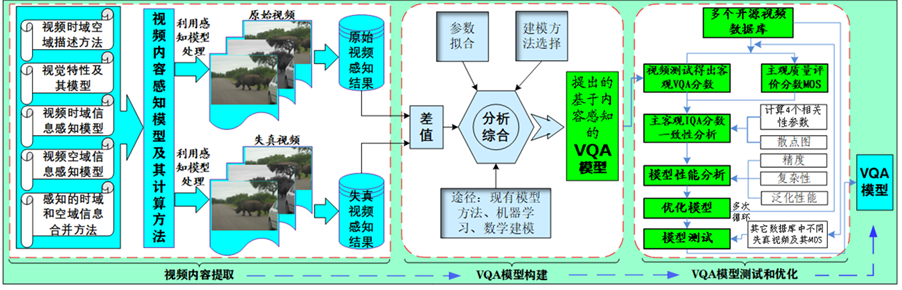 通过理论分析和实验研究,结合图像和视频的亮度、色度、纹理、模糊度、局部对比度等特征,以符合人类视觉感知效果和实际应用为导向,采用数学建模和机器学习方法,研究图像和视频内容描述方法及其特征提取方法,构建内容感知模型,研究其质量定义方法,设计基于图像和视频内容感知的质量客观度量准则,构建质量评价模型,揭示内容特征及其视觉感知效果与质量之间的内在规律;并基于多个数据库,从模型精度、泛化性和复杂性方面,测试、对比和优化所提模型。同时,建立图像和视频数据库,探索传输和编解码失真与图像和视频内容及其感知之间的内在联系,揭示中断、时延、编码比特率等特征参量与视频质量之间的内在规律,建立综合考虑视频内容特征、信道传输条件、编解码方式的基于人眼感知特性的视频质量客观评价体系;搭建LTE传输仿真实验平台,基于开源数据库,测试和研究模型精度、复杂性和泛化性能,且与现有典型模型进行对比分析,不断优化改进,最终实现所提模型在精度上达到主客观评价结果高度一致,且简单实用,从而为4G/5G中高效的视频传输提供一定的理论基础和技术支持。研究成果获省部级科学技术奖1项,厅局级科学技术奖3项。