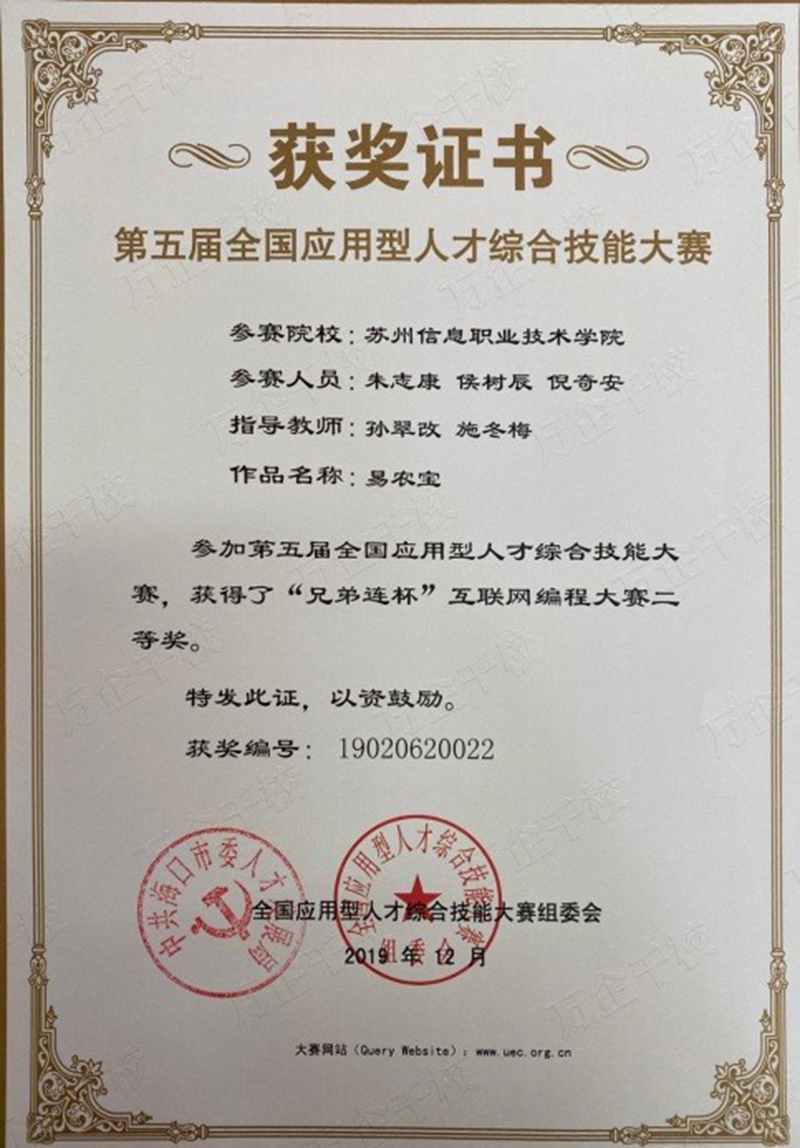 近年来,学院积极组织学生参加各级各类大赛,共荣获教育部主办的全国职业院校技能大赛一等奖1项,二等奖2项,三等奖1项,江苏省教育厅主办的高等职业院校技能大赛一等奖5项,二等奖8项,三等奖10项,全国高校计算机基础教育研究会主办的全国大学生计算机应用能力与信息素养大赛一等奖8项,二等奖10项,三等奖6项,团队二等奖2项,三等奖2项,思科网络技术学院理事会主办的“思科网院杯”大学生网络技术大赛一等奖6项,二等奖8项,三等奖10项。