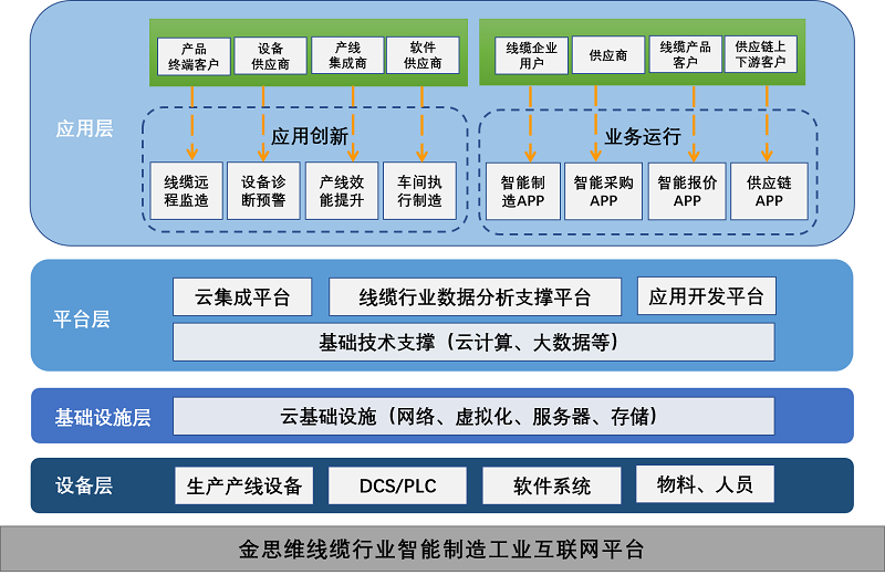 金思维工业互联网平台主要包括MftConnect、MftCloud、MftApps三部分。其中,MftConnect负责将数据传输到云平台,MftCloud为用户提供数据分析、应用开发环境及应用开发工具,MftApps为用户提供集成行业经验和数据分析结果的工业智能应用。金思维工业互联网平台将典型行业知识、典型企业应用、典型模型应用工具等规则化、软件化、模块化,并封装为可重复使用的微服务组件,可以面向特定工业场景开发不同的工业APP,进而构建成基于工业互联网平台的产业生态,助力传统企业进行互联网化的转型升级。