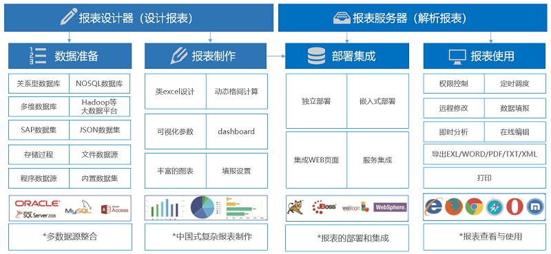 企业级web报表工具,Gartner《企业报表平台全球市场指南》唯一入选中国产品。FineReport易学易用,功能强大,简单拖拽操作便可制作中国式复杂报表, 轻松实现报表的多样展示、交互分析、数据录入、权限管理、定时调度、打印输出、门户管理和移动应用等需求。借助于FineReport的无码理念,IT部门可以轻松地构建出灵活的数据分析,网络直报等应用系统,大大缩短项目周期,减少实施成本,灵活应对公司日常管理需求。