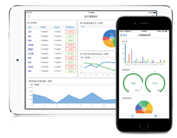 为帆软产品(FineReport/FineBI)提供移动端的数据分析和展示方案。采用HTML5和原生APP两种解析方式,具有良好的交互体验,多重安全防护,以及能够媲美PC端的功能:支持移动端数据录入,数据查询,数据联动、钻取,支持移动端扫码输入,批注分享,拍照上传,消息推送等等。同时能够支持与微信企业号以及钉钉的集成,满足多场景的移动数据分析需求。