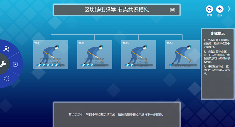 1)利用虚拟仿真技术,帮助用户迅速理解区块链核心理论知识;