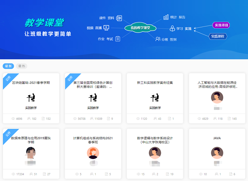 一流课程建设平台是一个支持用户自行组建课程,灵活整合学习资源,可提供系统性、专业性、实践性、多层次学习内容等多种类型课程的建设和使用平台。高校教师、学生和科研人员可以在平台中自建或借助平台的完整实践项目体系构建编程等实操类实验,配以视频和课件资源,发布课程,帮助学习者快速提升工程实践能力和理论知识水平。教师可以将课程下的实践项目、视频和课件批量发送到课堂中,充分利用课堂模块的功能,加强自己的教学管理,提高教学工作效率。