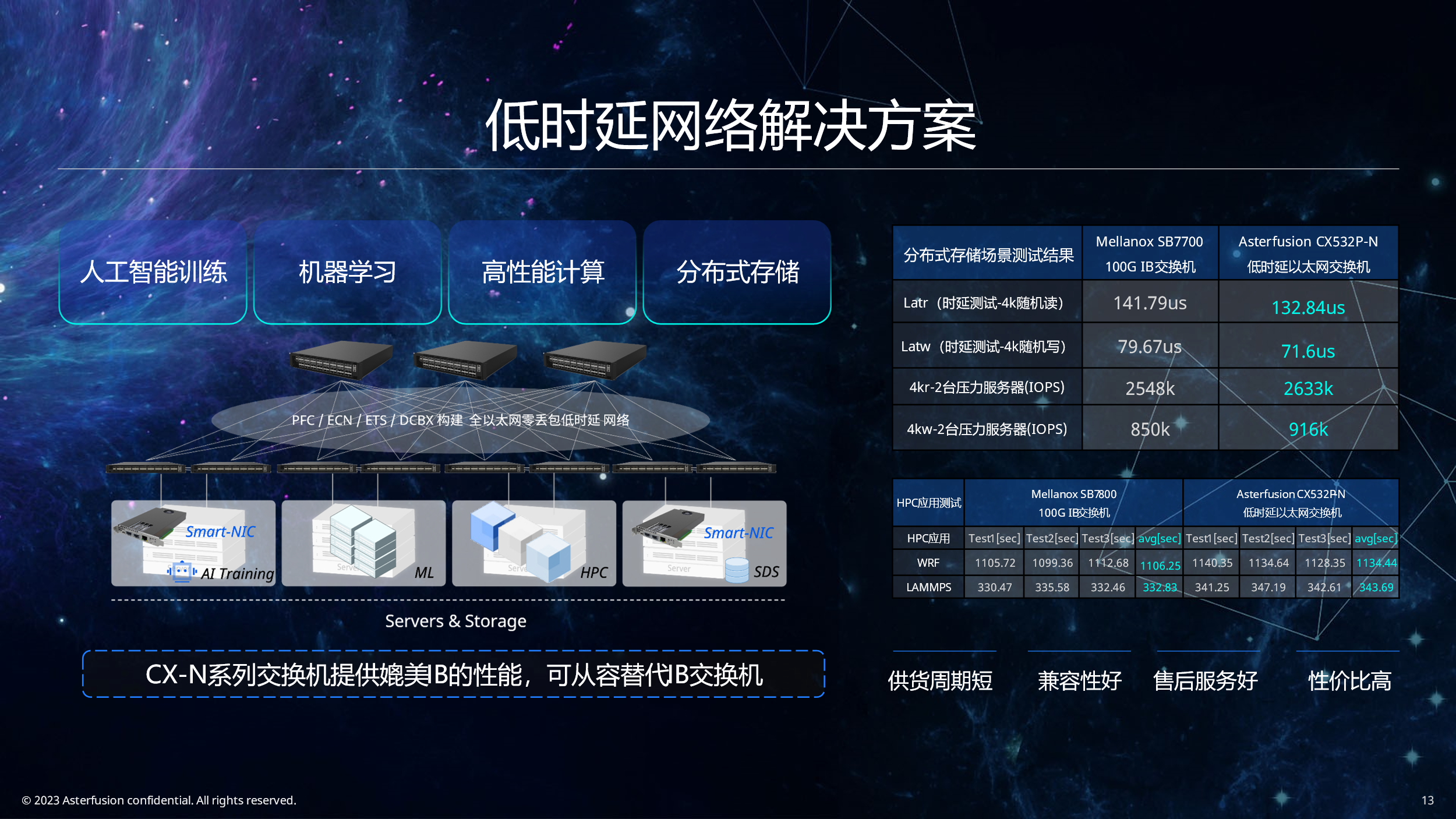 v2的性能较好,部署成本低,星融元CX-N系列低时延交换机搭建的超低时延无损以太网能够很好的承载RoCE v2,并基于此打造一张低时延、零丢包、高性能的HPC高性能计算网络。