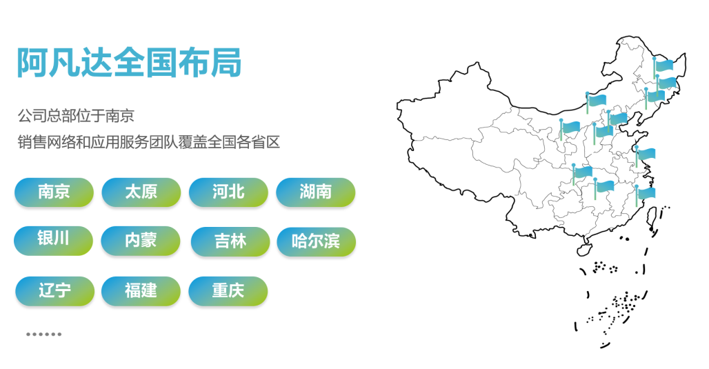阿凡达机器人总部位于南京,目前已在太原、银川、长沙、石家庄、长春、呼和浩特、哈尔滨等地建立子公司,销售网络和应用服务团队覆盖全国各省区。