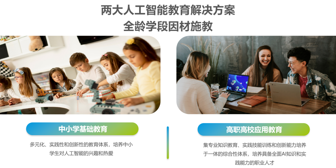 阿凡达机器人深耕人工智能教育,旨在为新质生产力提供强劲的人才动能。通过自研教学套件、搭配专业系统平台、结合各学龄段学习方案(中小学和高职高校两大解决方案)及智能竞赛,因材施教、让全龄段所有学生都能系统学习人工智能理论和应用知识,助力人工智能行业未来的创新与发展。